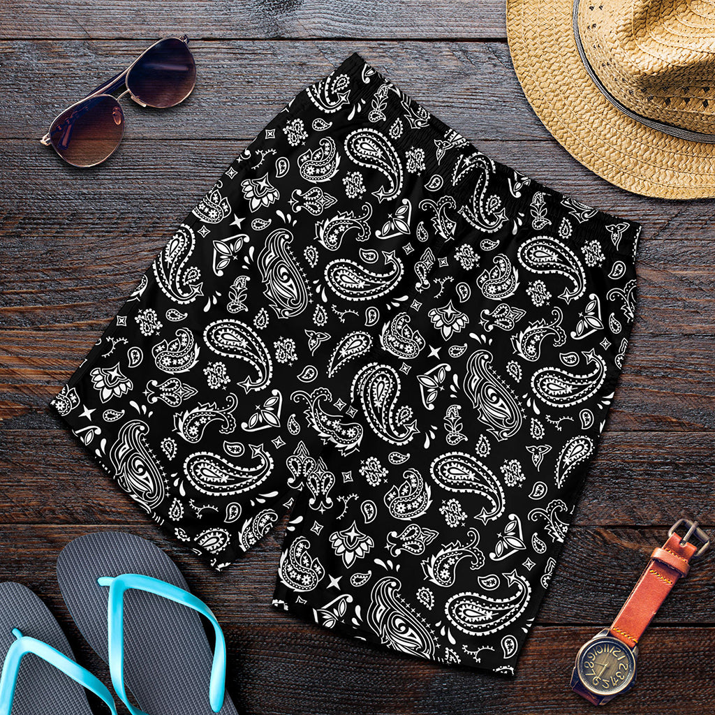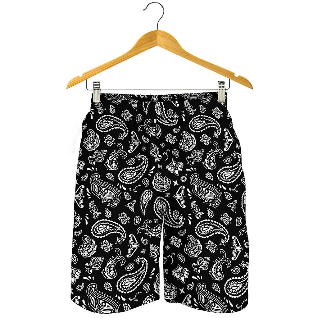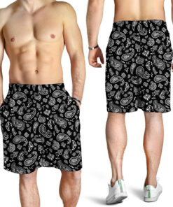 Black Paisley Bandana Pattern Print Men’s Shorts