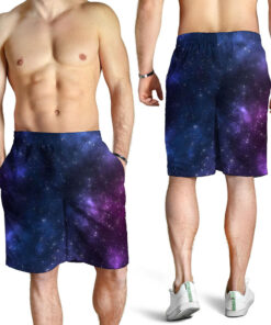 Blue Purple Cosmic Galaxy Space Print Men’s Shorts