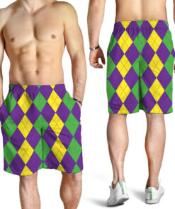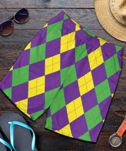 Mardi Gras Argyle Pattern Print Men’s Shorts