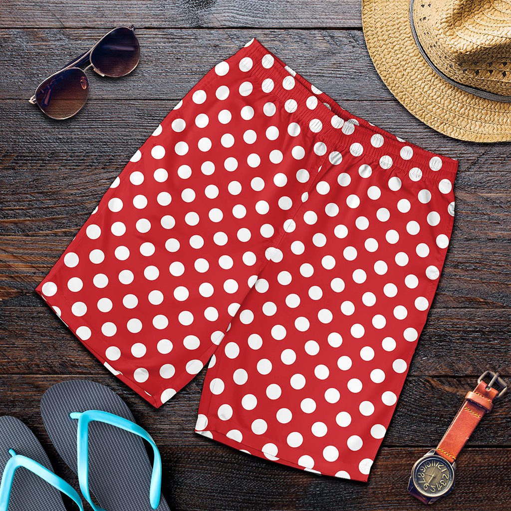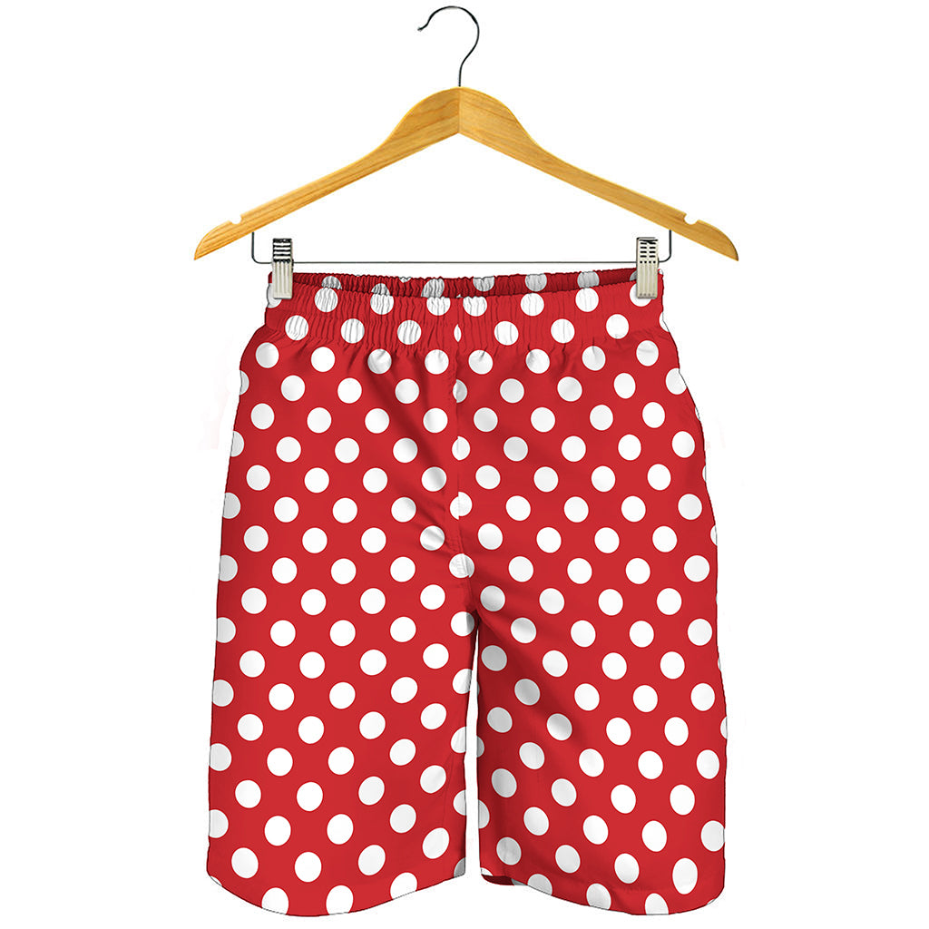 Red And White Polka Dot Pattern Print Men’s Shorts
