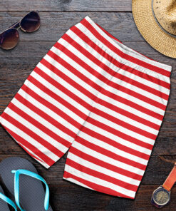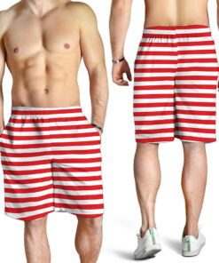 Red And White Striped Pattern Print Men’s Shorts