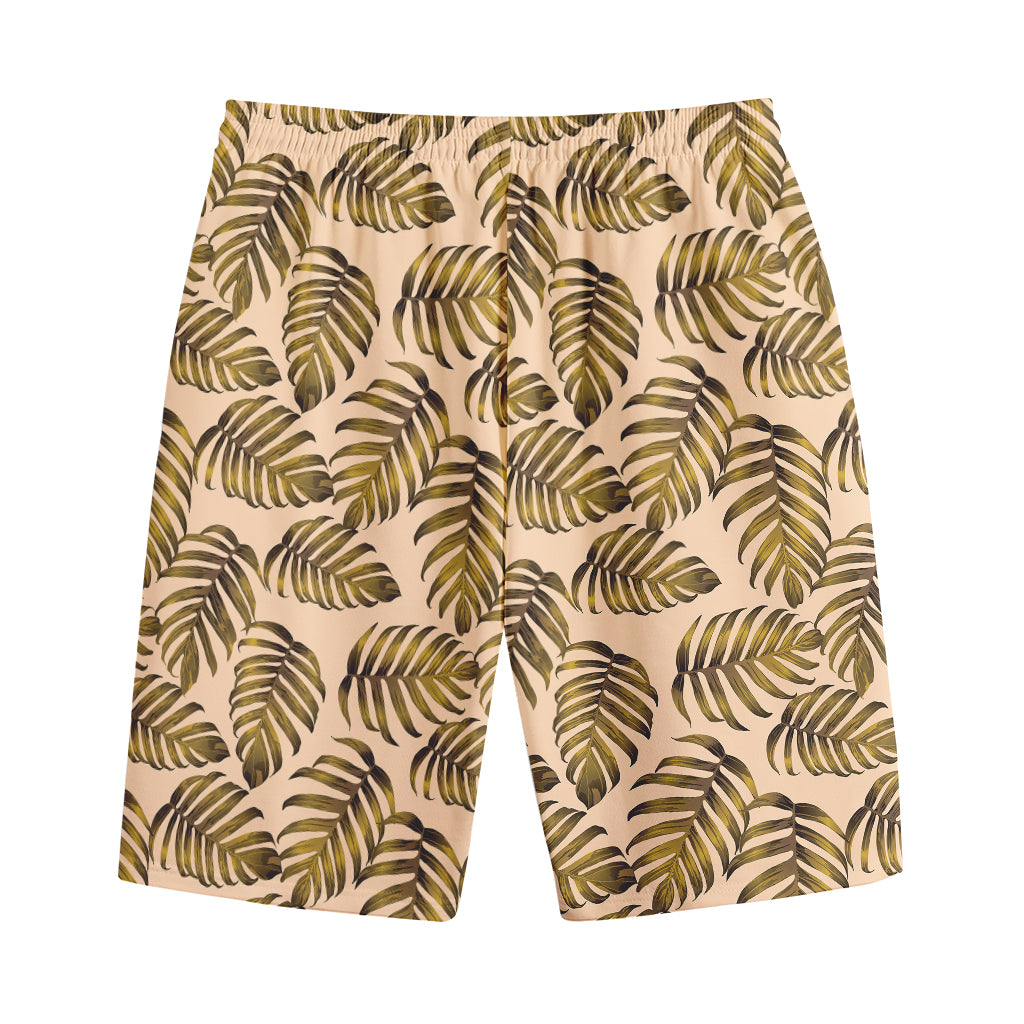 Yellow Monstera Leaves Pattern Print Cotton Shorts