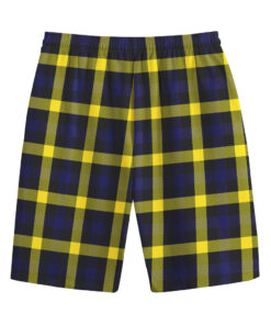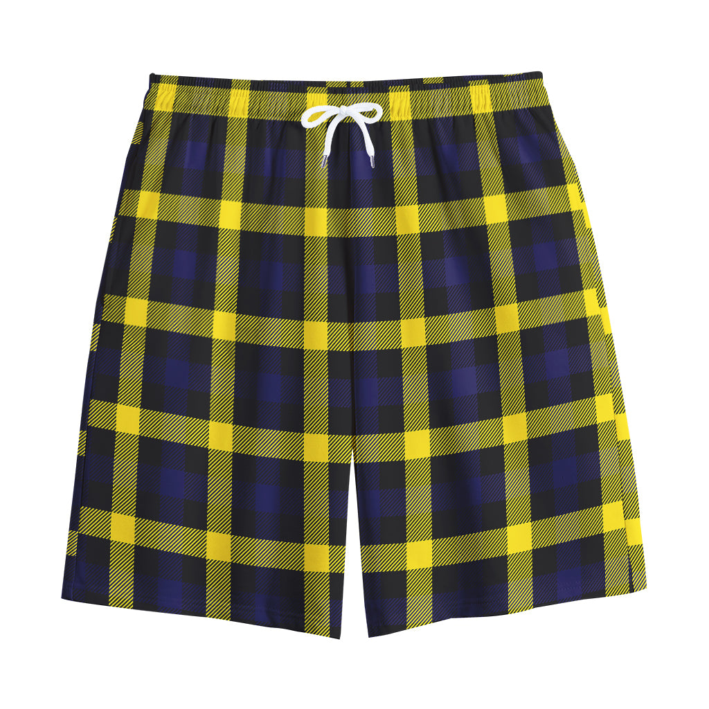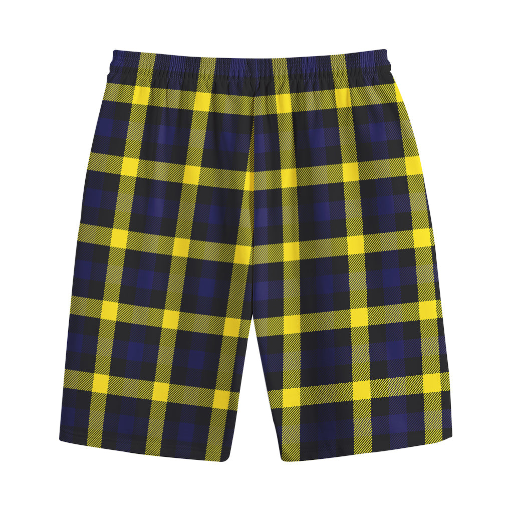 Yellow Navy And Black Plaid Print Cotton Shorts