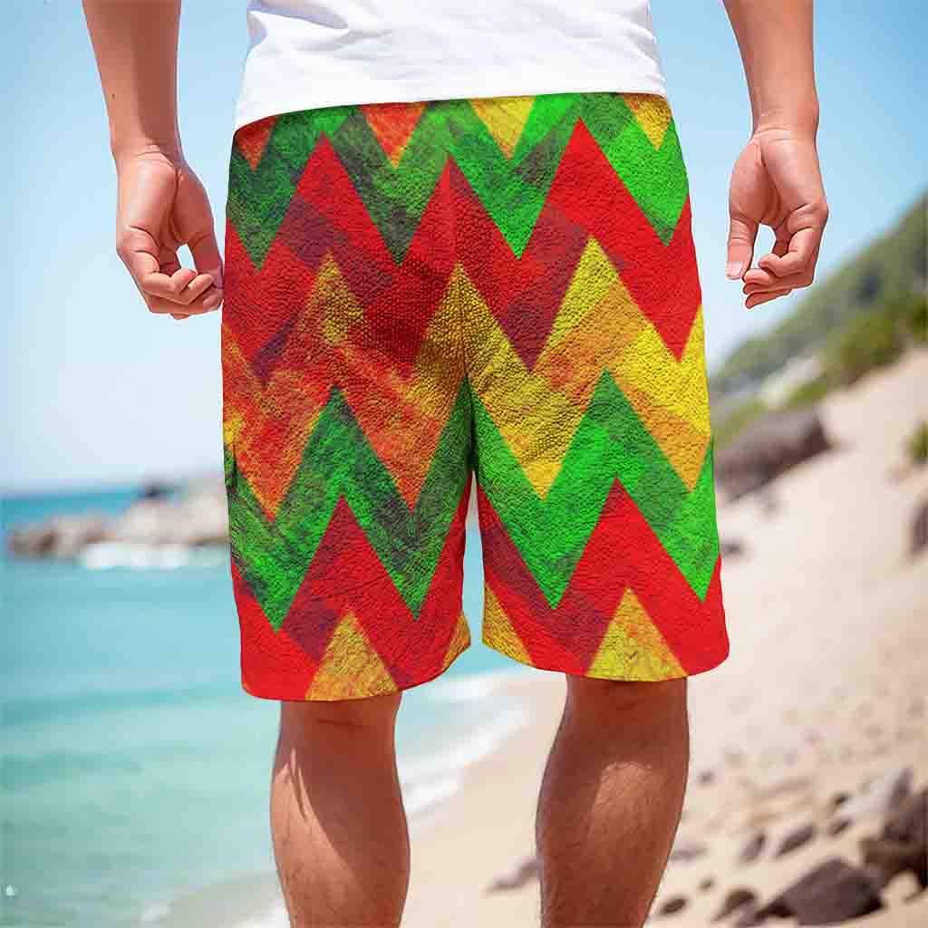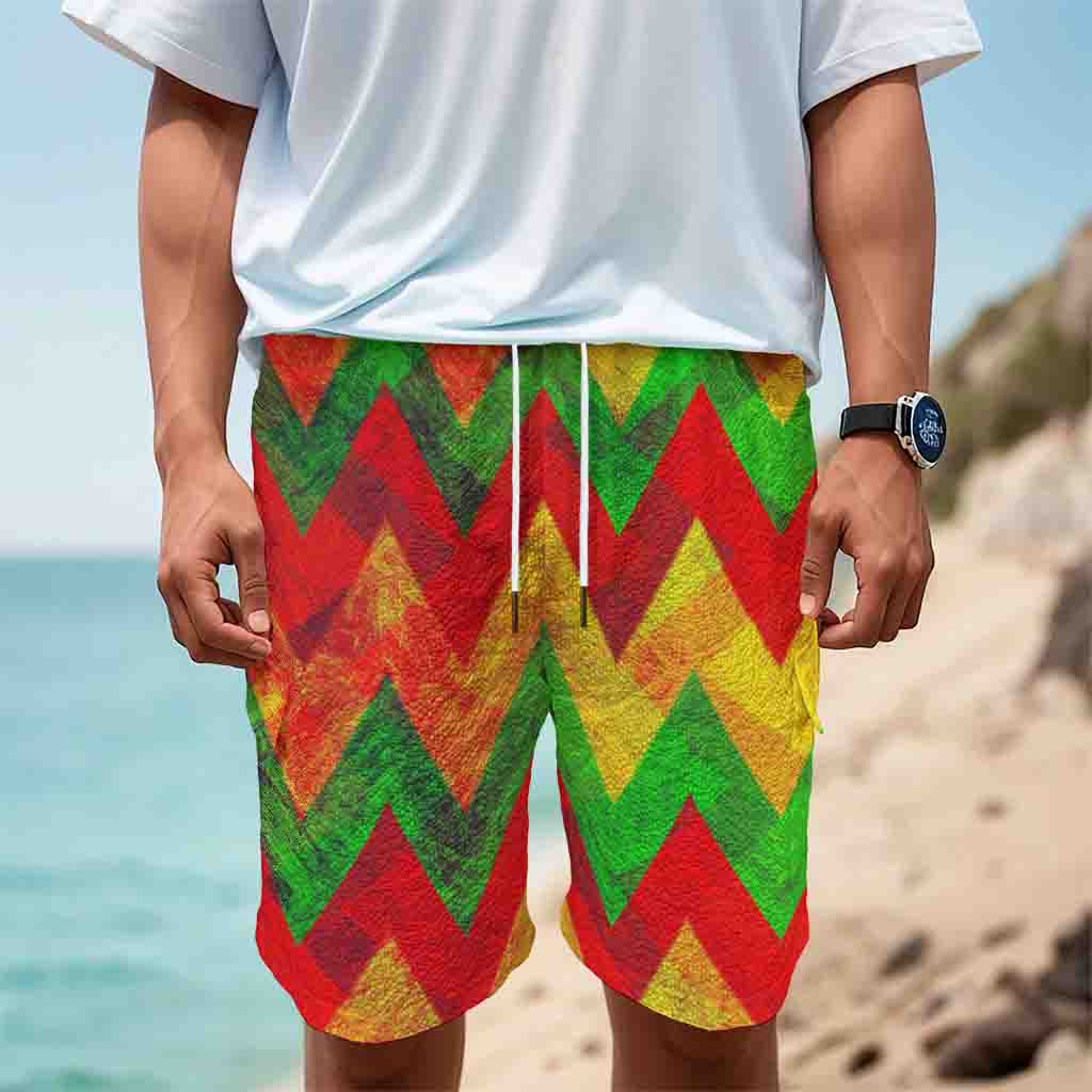 Zig Zag Reggae Pattern Print Men’s Cargo Shorts